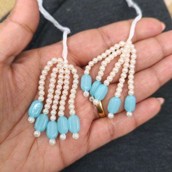Blue Moti With White Moti Tessel / Latkan Hanging 1 Pair