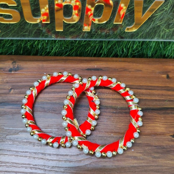 Gotta Patti Pearl Rings Pack Of 10 Pcs Red