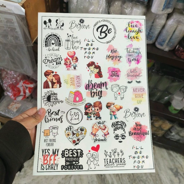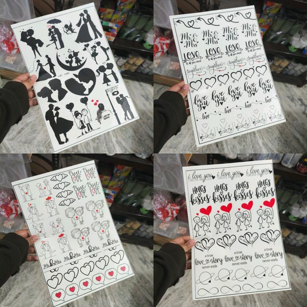 Love Theme Insert Sticker Sheet Size A4 Valentine's Pack Of 10 Sheets