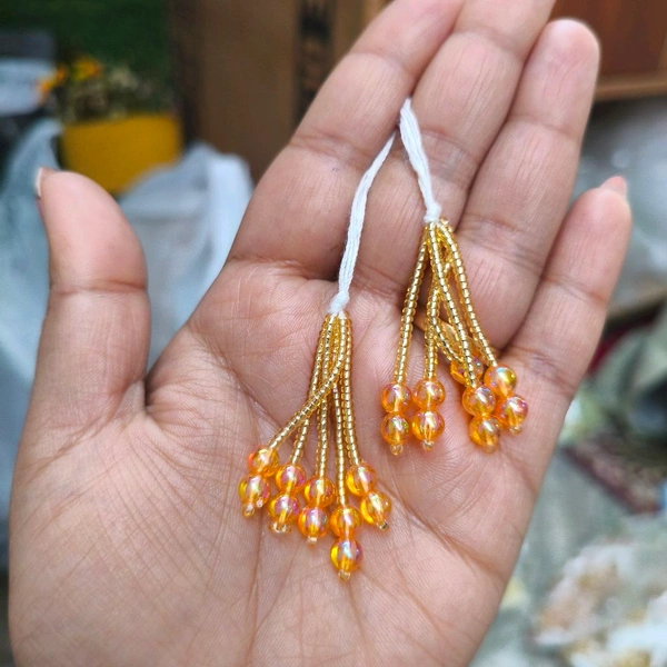 Orange Golden Moti Latkan / Tessel / Hanging Pair