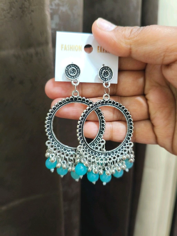 Resin Jhumka Base Pair Silver (Blue Bead)