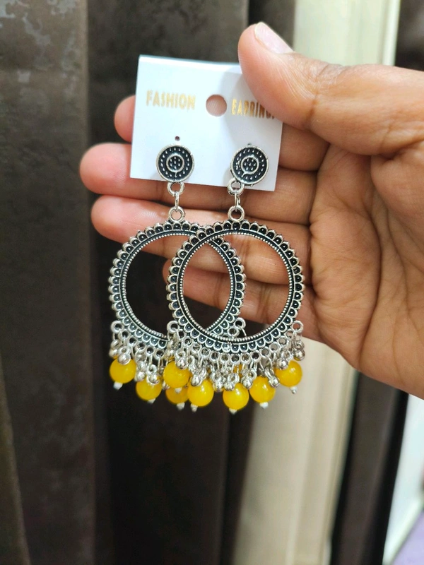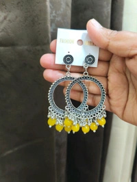Resin Jhumka Base Pair Silver ( Yellow Beads)