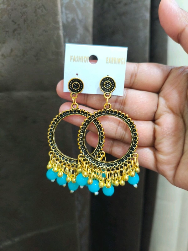 Resin Jhumka Base Pair Golden ( Blue Bead)