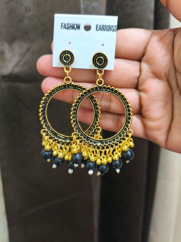 Resin Jhumka Base Pair Golden ( Black Beads)