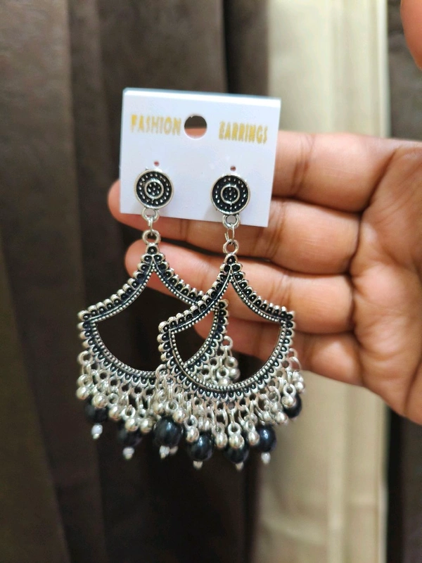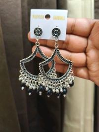 Resin Jhumka Base Pair Silver Black Beads