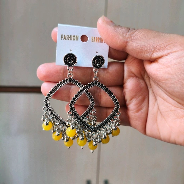 Resin Jhumka Base Pair Square Silver(yellow Beads)