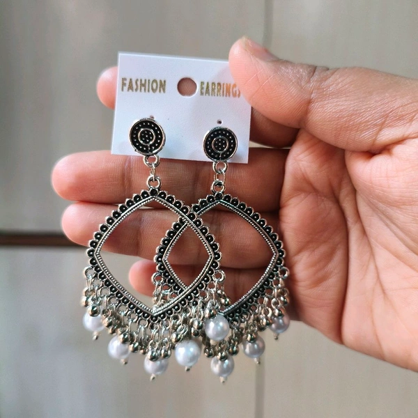 Resin Jhumka Base Pair Square Silver(white Beads)