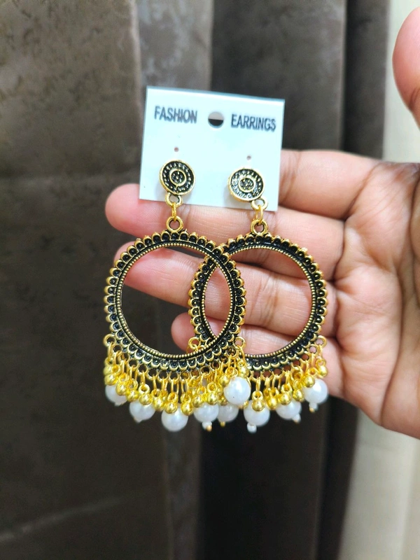 Resin Jhumka Base Pair Golden (White Green)