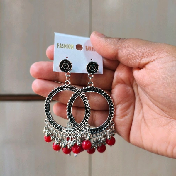 Resin Jhumka Base Pair Round (Red Beads)