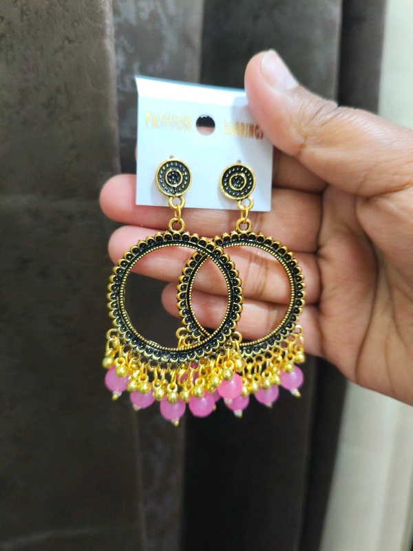 Resin Jhumka Base Pair Golden (Pink Bead)