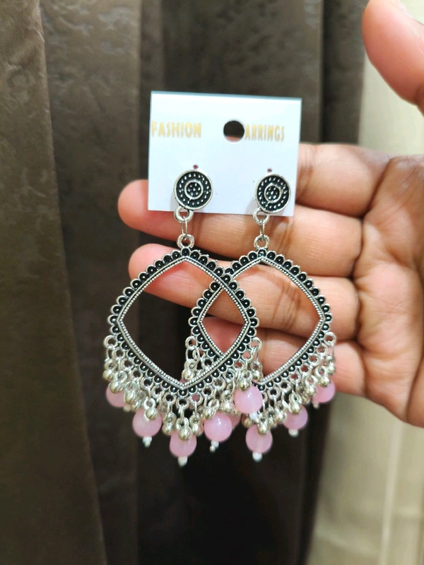 Resin Jhumka Base Pair Silver ( Pink Beads)