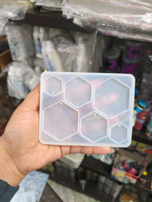 Resin Keychain Mold 6 Cavity Hexagon With Hole