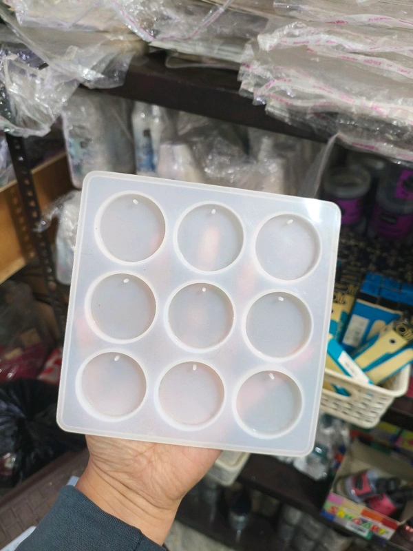 Resin Round Keychain Mold With Hole 9 Cavity Size 1.8 Inch Approx
