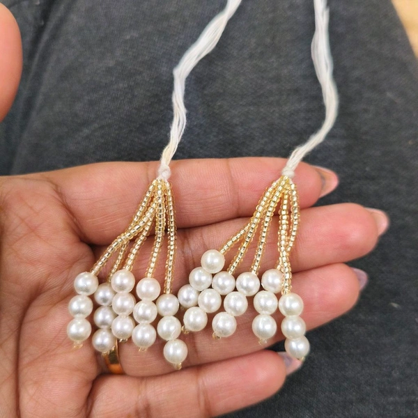 White And Golden Moti Latkan / Tessel / Hanging Pair