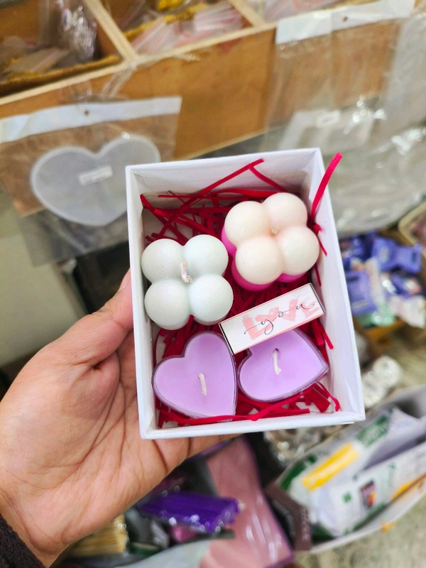 Valentine's Candle Box 4 Pc ( 2 Bubble Candle And 2 Heart Tealight