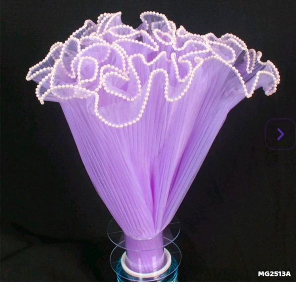 Wrapping Bouquet Wrinkled Net 1 Pc Pearls On The Top ( Purple)
